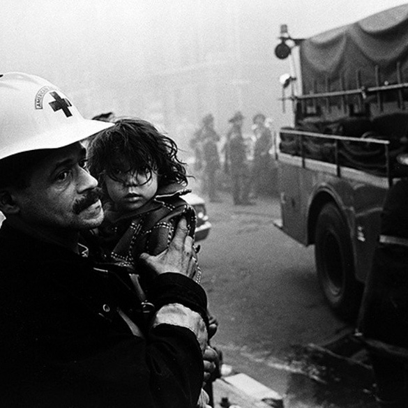 The Red Cross has responded to home fires since our beginning in 1881. Here, a Red Cross worker helps a child in 1972 after a tenement fire. Read more about our history responding to home fires.