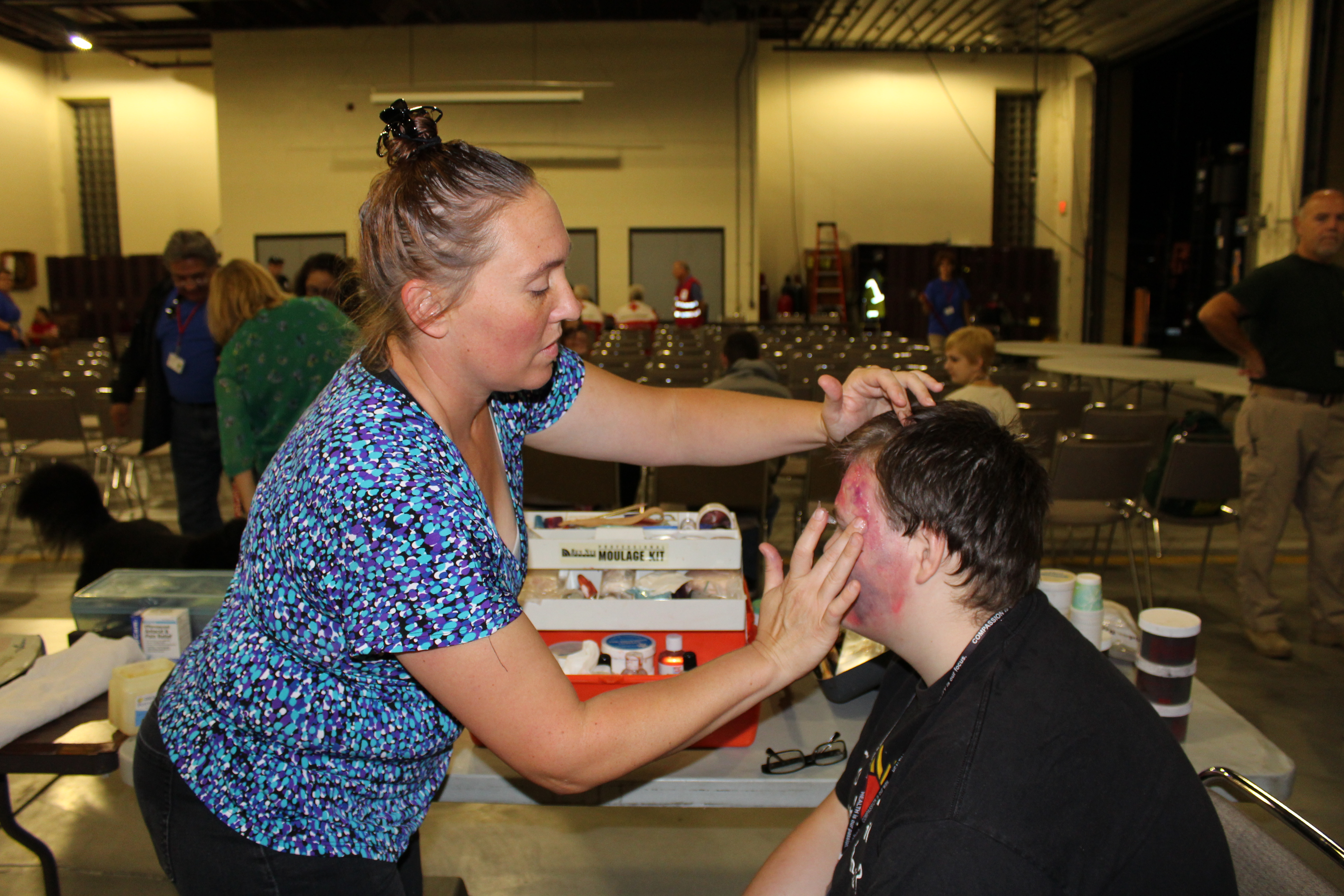 Moulage Published October 8, 2015 at 5184 × 3456 in New Disaster Ops Chief Brings Wealth of Experience To Region Community Volunteer Colleen Drews prepares a “victim”