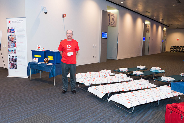 Volunteer with cots