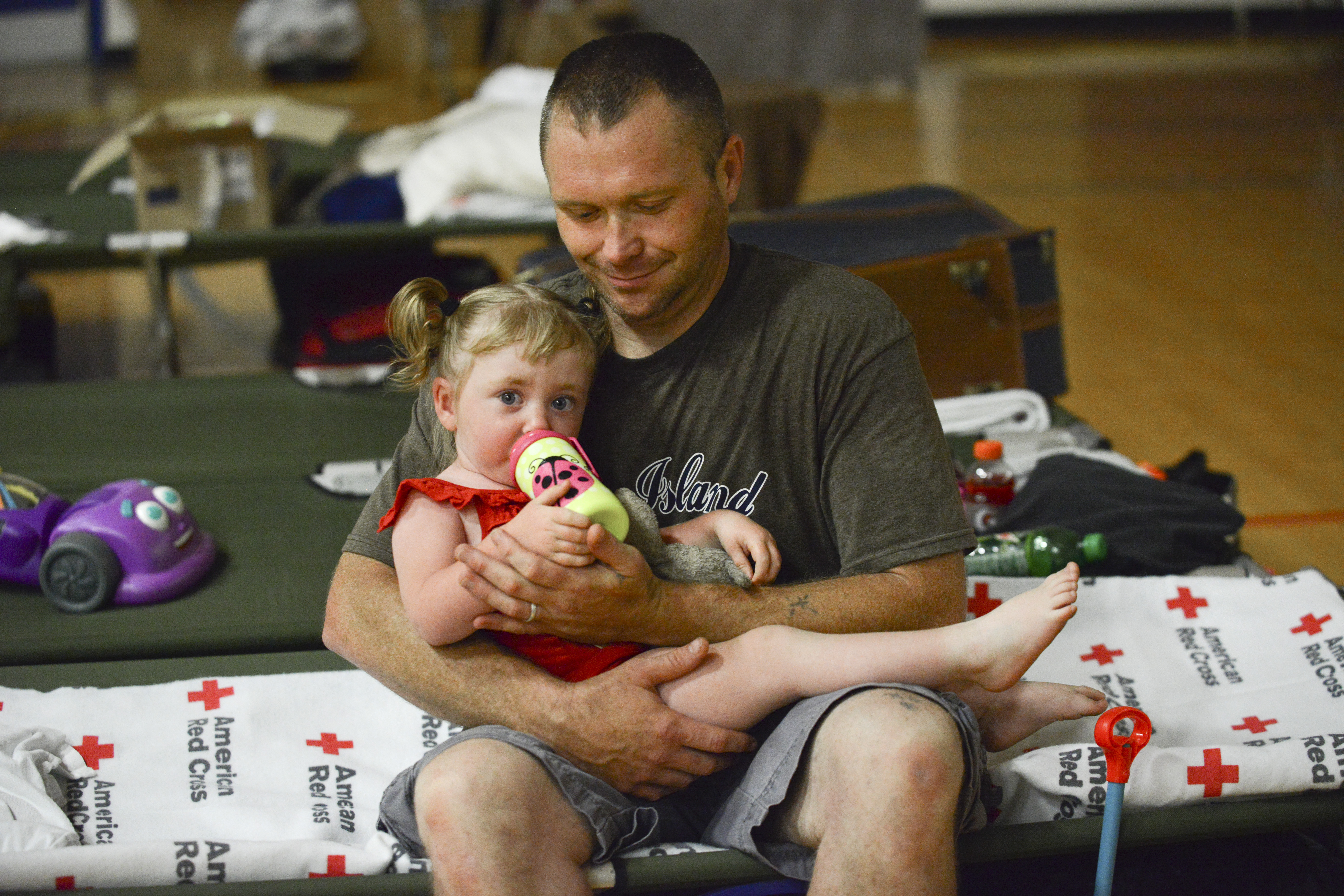 Randal Butler with his daughter Skyler. Randall and his wife Tianna Butler recently moved into an upstairs apartment with their two-year-old daughter named Skyler. Tianna is 8 months pregnant. “Last Thursday the rains started. It came up really fast. When we saw the hillside crumble from the water we called 911, who told us it was safer to stay in the top part of the house rather than risk moving outdoors with all the flooding going on”, says Randall. “I was getting contractions from all the stress,” says Tianna. She and Skyler were rescued on Saturday at 12:30 a.m. and brought to the Red Cross shelter at Capital High School in Charleston. Randall joined them later. “We really appreciate what the Red Cross has done,” says Randall. “I never had any encounter with the Red Cross nor do I know anyone who has dealt with them, but everything they did has been top-notch; they are really professional.” But the Butlers remain concerned about the future. The money that they put into moving and fixing up their new apartment is now gone with the floodwaters. Having so recently moved, they hadn’t yet purchased any home insurance. “I hope we get some assistance or we will be on the sidewalk somewhere,” says Randall.