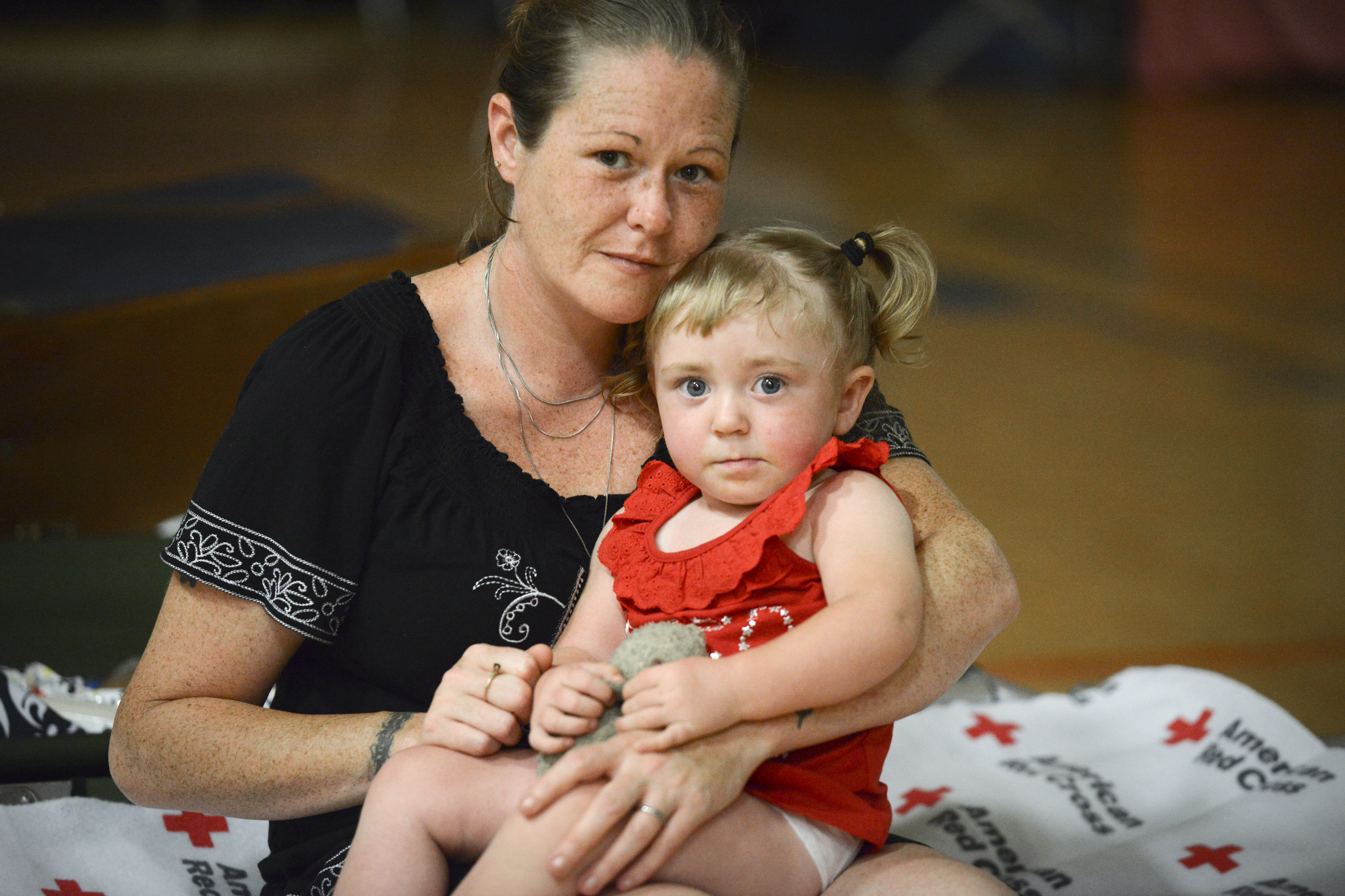 Mother Tianna Butler and her daughter Skyler. Randall and his wife Tianna Butler recently moved into an upstairs apartment with their two-year-old daughter named Skyler. Tianna is 8 months pregnant. “Last Thursday the rains started. It came up really fast. When we saw the hillside crumble from the water we called 911, who told us it was safer to stay in the top part of the house rather than risk moving outdoors with all the flooding going on”, says Randall. “I was getting contractions from all the stress,” says Tianna. She and Skyler were rescued on Saturday at 12:30 a.m. and brought to the Red Cross shelter at Capital High School in Charleston. Randall joined them later. “We really appreciate what the Red Cross has done,” says Randall. “I never had any encounter with the Red Cross nor do I know anyone who has dealt with them, but everything they did has been top-notch; they are really professional.” But the Butlers remain concerned about the future. The money that they put into moving and fixing up their new apartment is now gone with the floodwaters. Having so recently moved, they hadn’t yet purchased any home insurance. “I hope we get some assistance or we will be on the sidewalk somewhere,” says Randall.