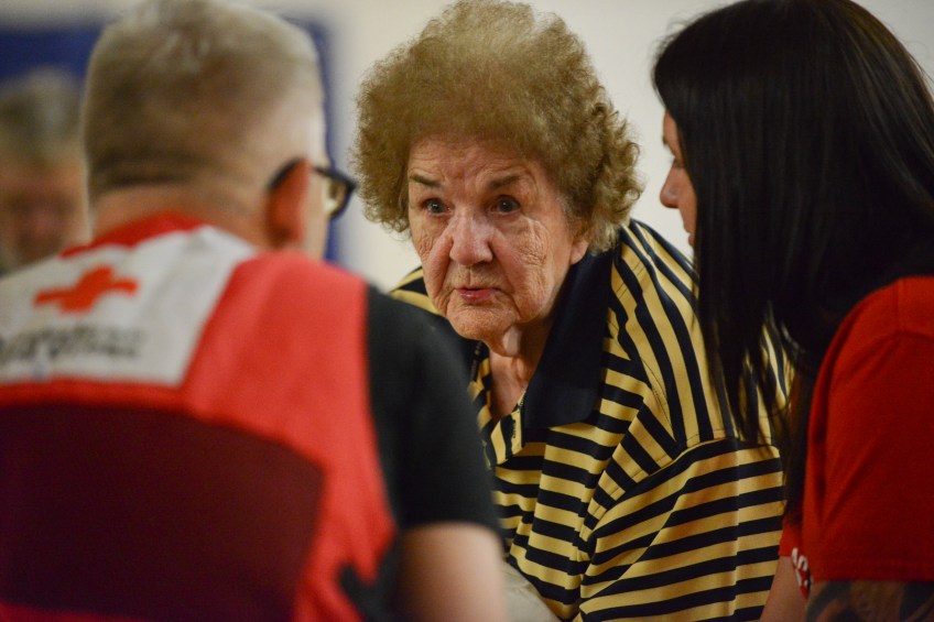 90-year-old Lucille Chandlers home in Clendenin was flooded on Thursday. She and her daughter were rescued by a neighbor who had a boat. He transported them to a nearby church that was partially flooded, but where the top floor was still dry and used by local residents seeking shelter. Yesterday she was brought to the Capital High School gymnasium in Charleston which has been turned into a Red Cross shelter. I really appreciate what the Red Cross has done for me, explains Lucille, I have a problem walking and the Red Cross volunteers bring me around in a wheelchair. The next step for Lucilles Red Cross assistance will be handled by caseworkers.