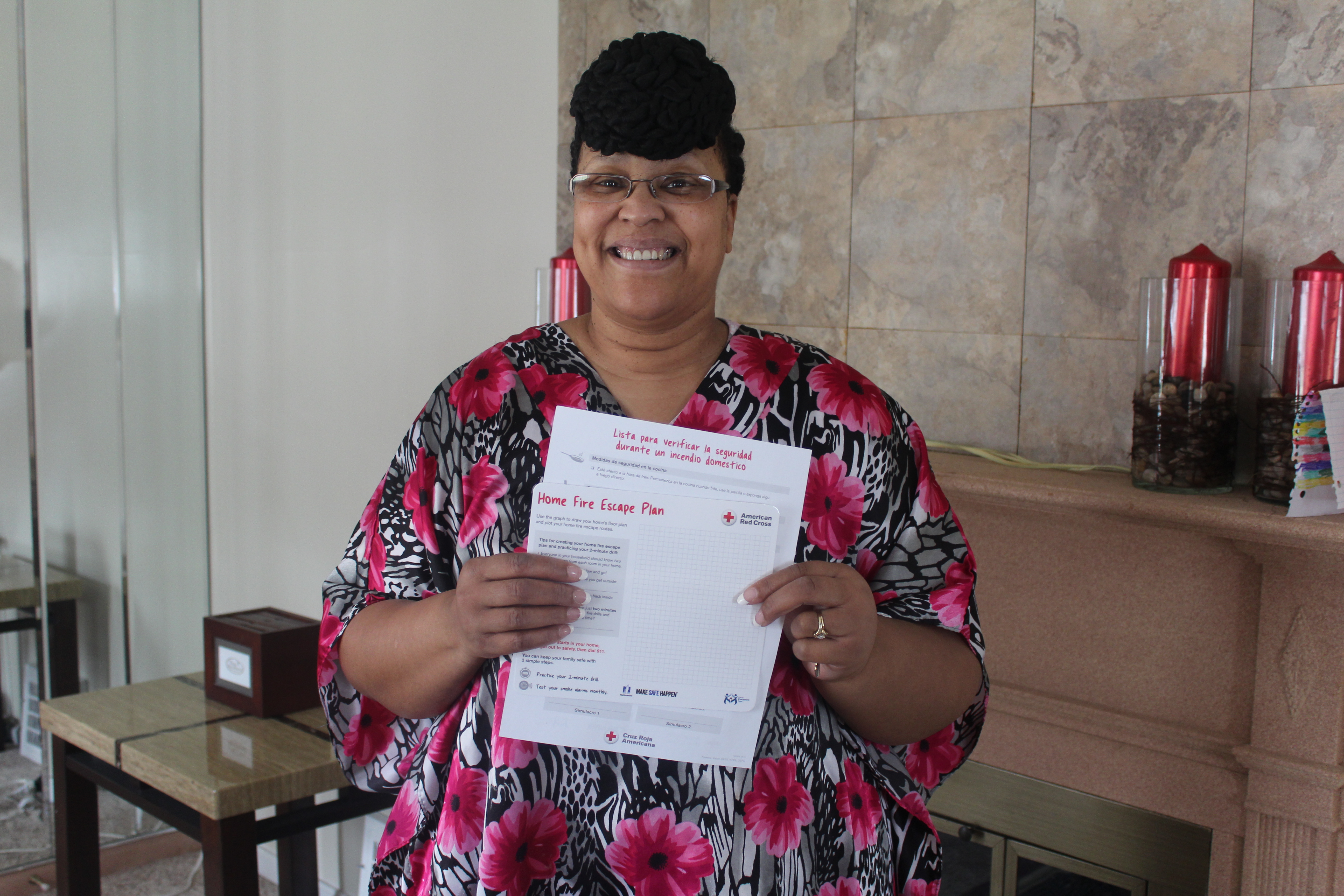 IMG_3845 Published April 24, 2017 at 5184 × 3456 in Team Effort Makes Maple Heights Neighborhood Safer Mikoyan Headen is happy to have Red Cross fire safety information