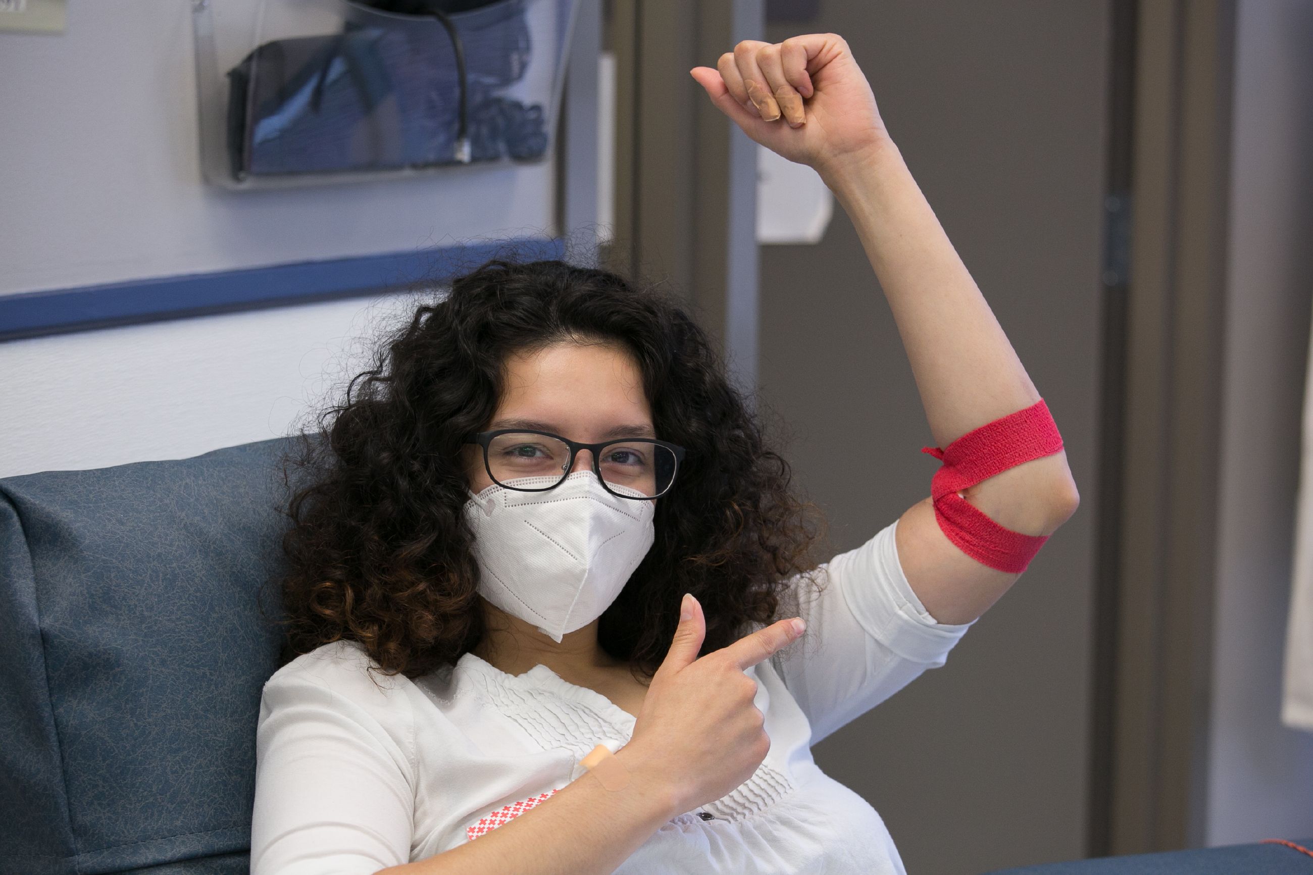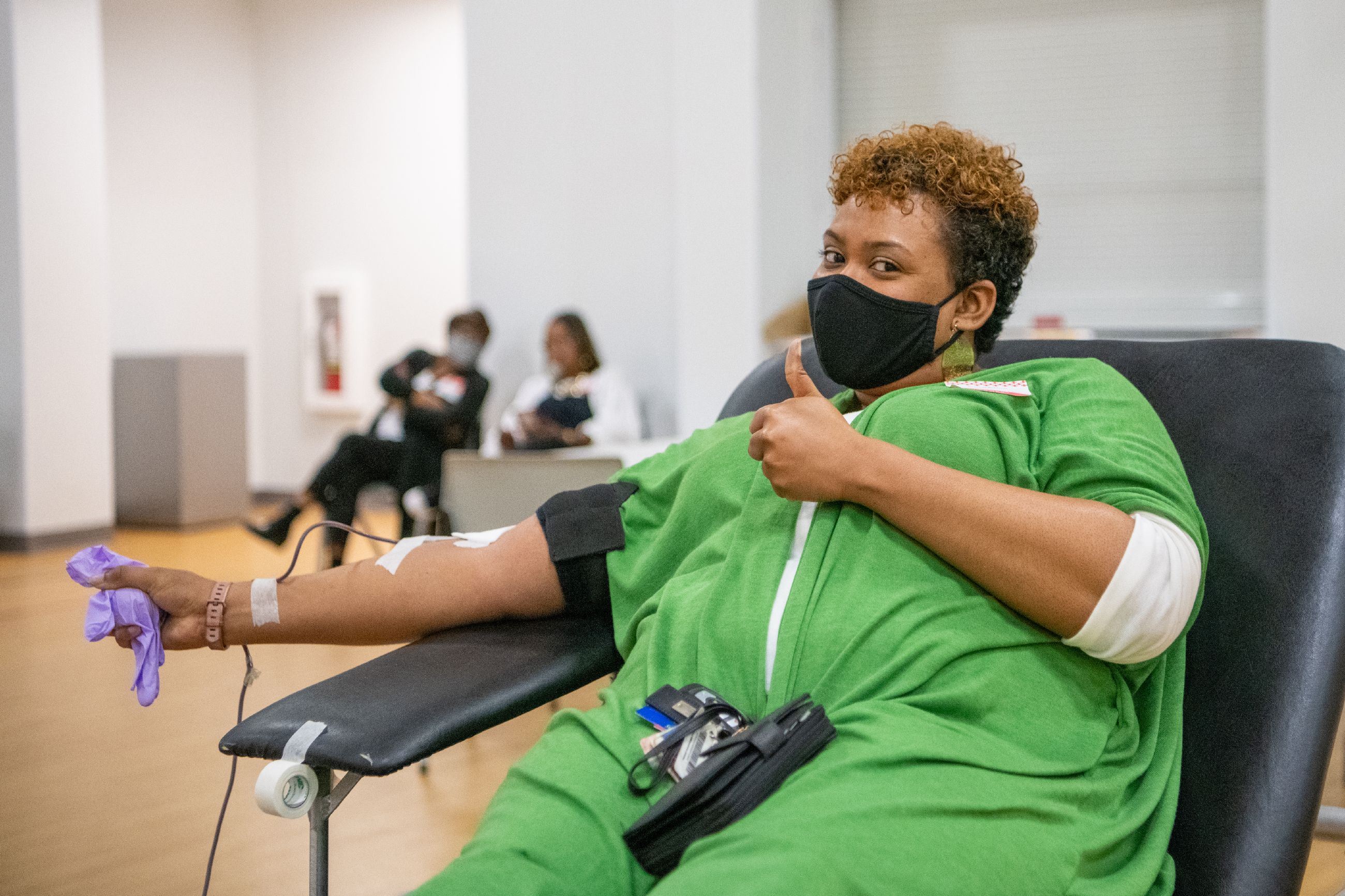 Jesika donates, and she has advice for anyone considering giving blood for the first time: “Hop up on that table, put your latest show on your phone, breathe (because 1, 2, 3…stick). Now, close your eyes, clear your head and thoughts, just relax, and take a few moments for you. Once you’re all done, grab your snack, and walk out knowing you just saved someone’s life, or three.”