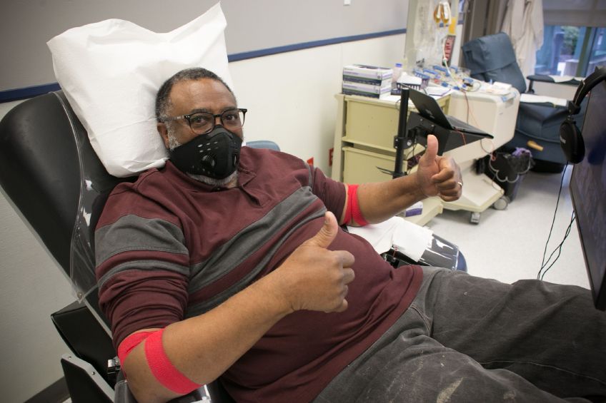 Blood Donation Center – Maryland 2020 Published September 25, 2020 at 2600 × 1733 in Blood Donation Center – Maryland 2020 April 24, 2020. Baltimore, Maryland. A Red Cross blood donor celebrates after giving blood during the COVID-19 outbreak at the Mount Hope Blood Donation Center. Photo by Dennis Drenner/American Red Cross