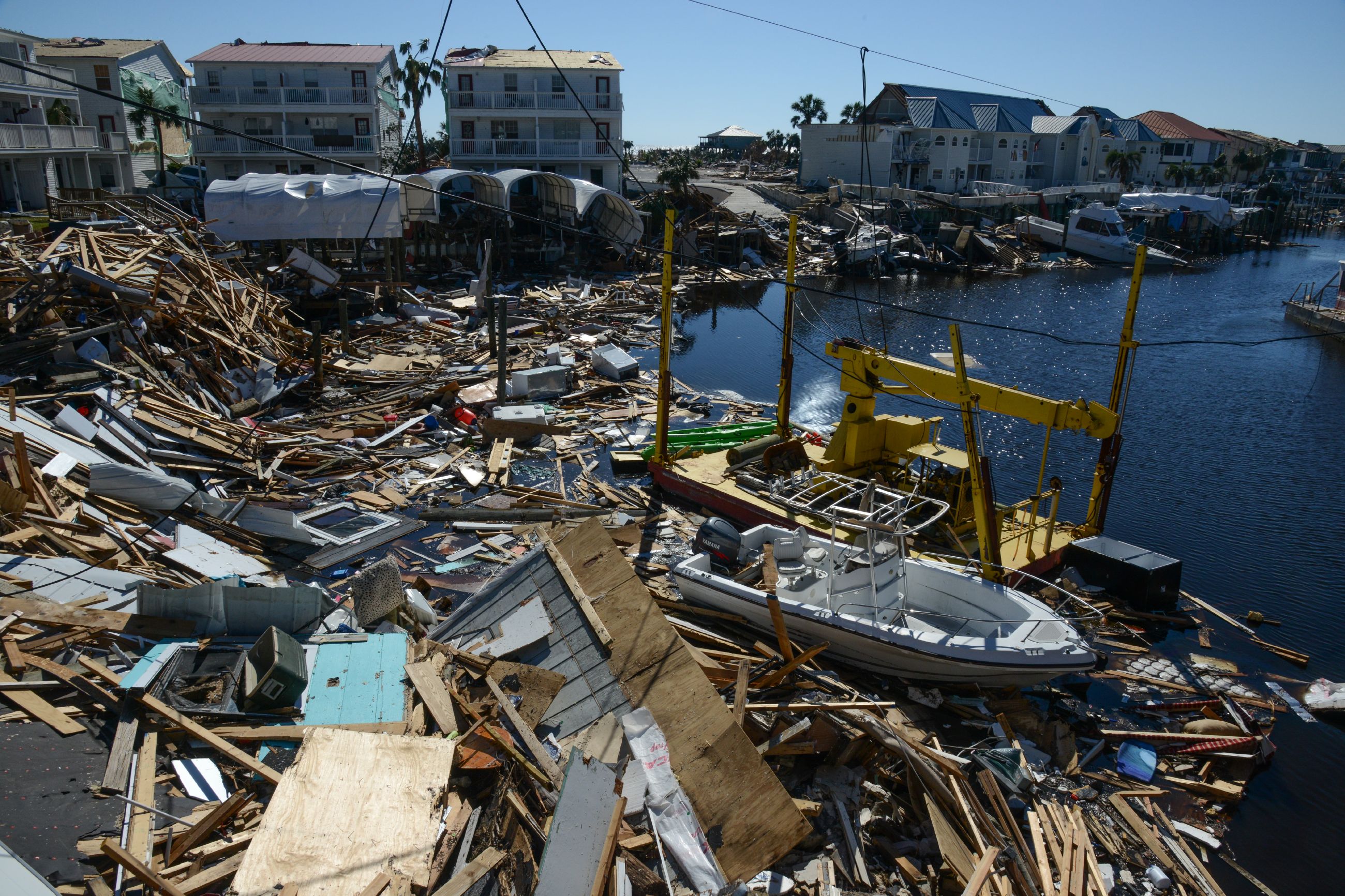 October 13, 2018, Mexico Beach, Florida. Hurricane Michael inflicted a monstrous amount of damage to this beach-side community as it slammed into the the Florida Panhandle with almost 150 mile per hour winds. Boats were tumbled every-which way on the shore along harbor areas and even well inland. Homes were blown completely off foundations and tossed many yards away, and in many cases homes were reduced to construction rubble. Almost every building suffered severe damage. The damage was so extensive the curiosity was the very few homes or businesses that did not have observable severe damage instead of the norm of devastation.