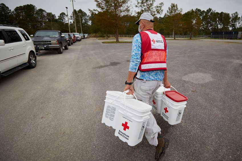 On September 19th, the Salvation Army set up a mobile kitchen to provide meals at the Equestrian Center. Nearby, the American Red Cross set up a cleanup kits distribution area to help residents of Pensacola and the surrounding areas as they work to clean up their homes while contending with power outages and downed trees. Dozens of cars lined up for a hot meal and relief items like shovels, gloves and tarps.