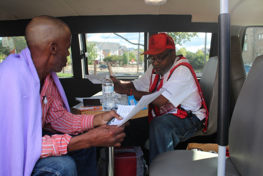 IMG_1739 Published August 22, 2016 at 5184 × 3456 in IMG_1739 Resident Therens Vitanzan receives assistance from Red Cross volunteer Walter Reddick