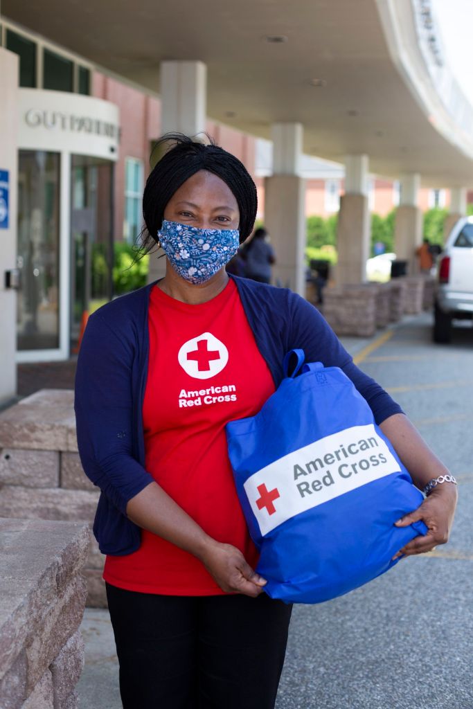Red Cross SAF activities during COVID-19 2020 Published November 16, 2020 at 1733 × 2600 in Red Cross SAF activities during COVID-19 2020 June 10, 2020. Hampton, Virginia. Eugenia Anteh distributes comfort kits for veteran patients at the Hampton VA hospital during the COVID-19 pandemic. Photo by Dan Jeter/American Red Cross