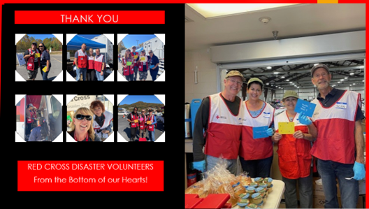 Thank you for delivering service in the community to help your neighbors when needed most. Your efforts are greatly appreciated, and we are most grateful for your service as a Red Cross Disaster volunteer.