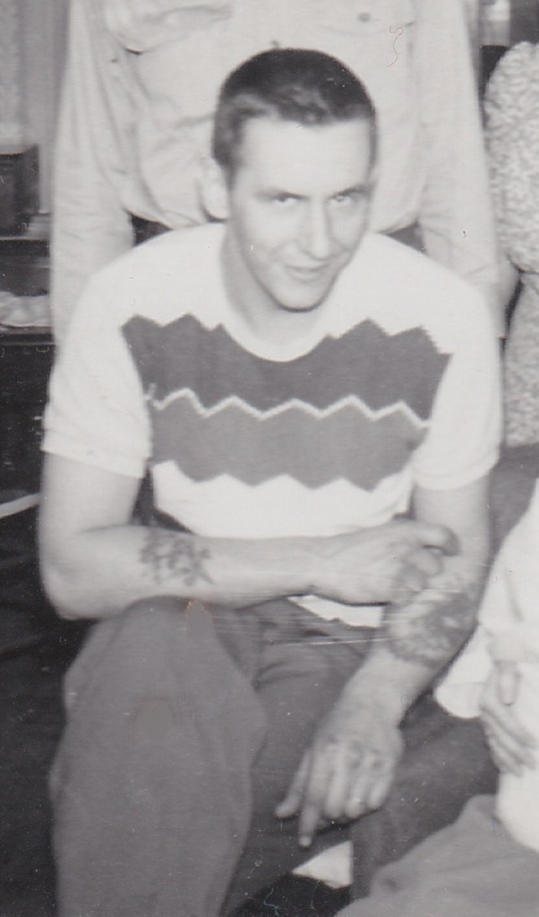 Grandma got out with him and once the hood was open, Grandpa began rolling up his sleeves to get to work. Suddenly he heard my grandmother scream, “TATTOOS!” Apparently, in all their time together, Grandpa had always worn long sleeves and had not revealed his two very prominent arm tattoos, courtesy of his time in the Army during World War II.