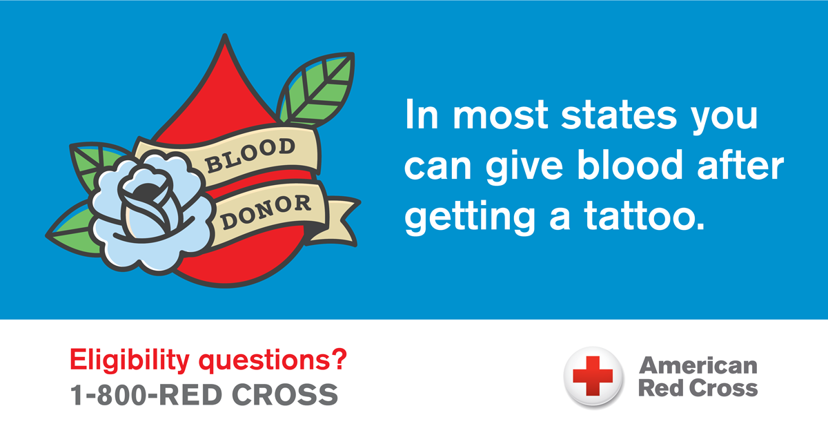 You’re probably thinking, “Great story but what does it have to do with the American Red Cross?” Well, if you didn’t know, July 17 is National Tattoo Day, a day that “recognizes the history, culture, and artists dedicated to etching ink permanently on the skin.” Unfortunately, many people think the Red Cross is just as shocked by tattoos as my grandmother was that night many years ago. People often tell me they can’t donate blood because they have a tattoo, or that they recently got a tattoo and think they must wait years before giving again.