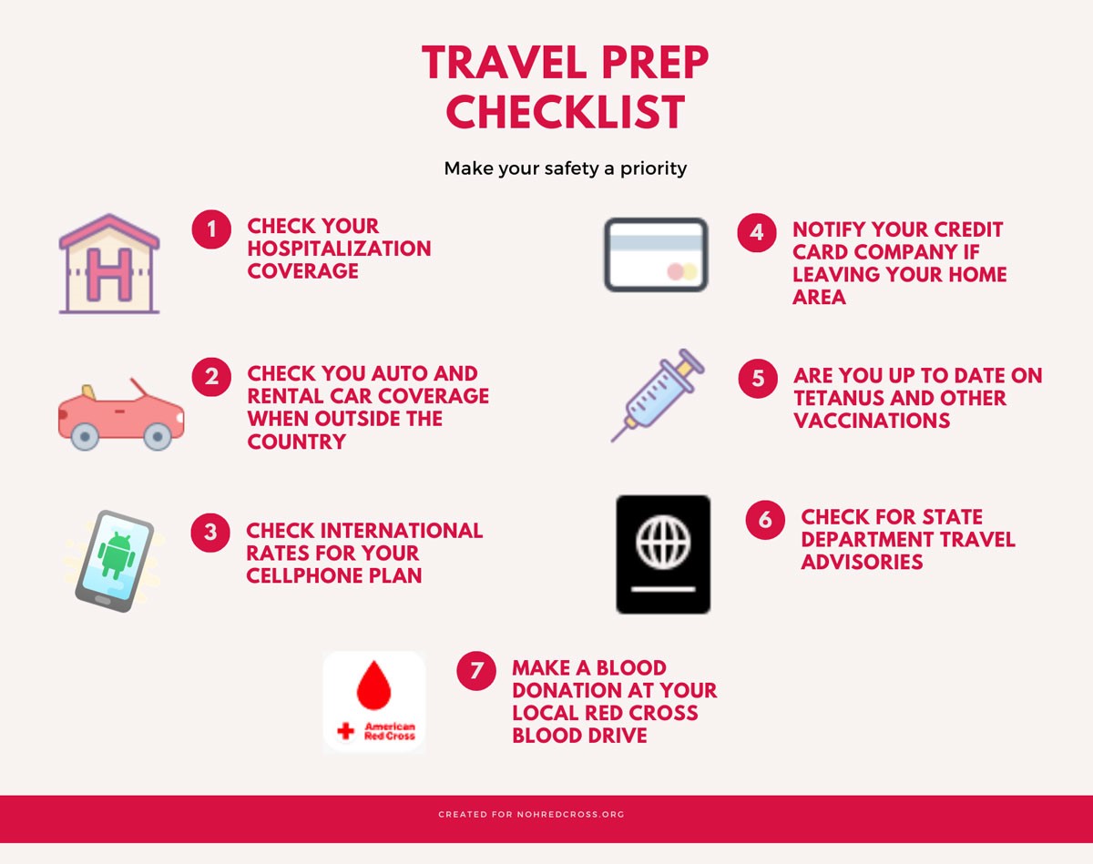 Lastly, before you go, make a blood donation appointment. There’s a severe shortage right now, and the need is great. If you’ve never donated before, you can load the Red Cross Blood app on your phone, and shortly after your donation, you’ll know what blood type you are. Then, while you are traveling, rest easy, knowing your donation can save up to three lives.