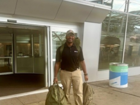 The team Nasir deployed with, “Team 55,” had only met online prior to their case work and other Red Cross training at Camp Atterbury, in Edinburgh, Indiana. “In the same room it was different,” Nasir said. “We had Red Crossers who had deployed before… and they were absolutely essential.” Even with his previous military experience, specifically deploying overseas, Nasir said he approached his training as a first timer. “They were so valuable to my experience. It being my first time overseas with the Red Cross… I leaned on the Red Crossers who had done this before. Those were the ones who were leading the way.”