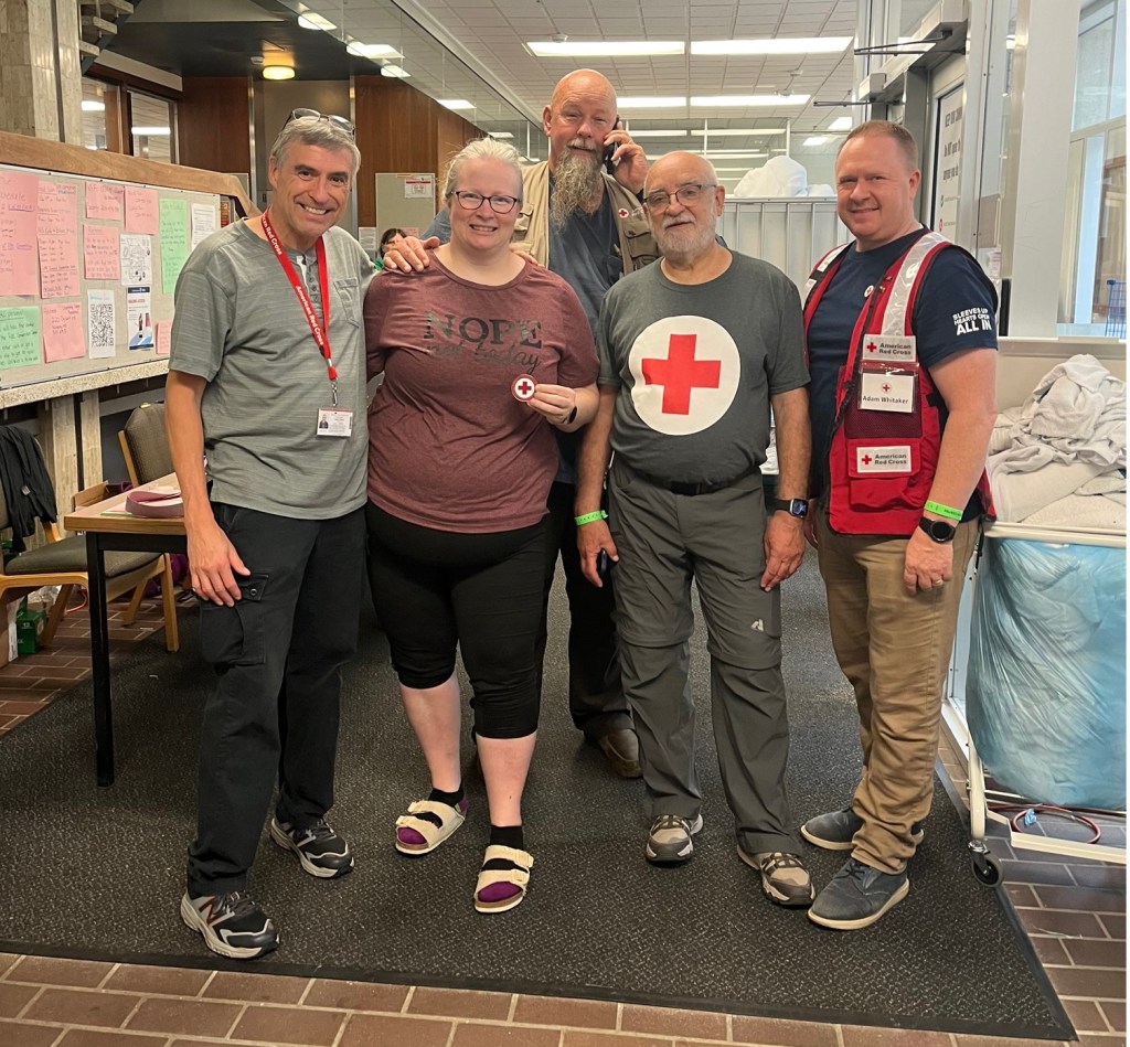 Northern Ohio volunteer Paul Hiszem (second from right) with other Red Cross and Canadian Red Cross volunteers providing relief during the Manitoba wildfires, July 2025.