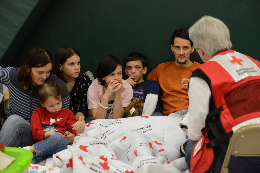 The Calhoun family has lost everything. They have no car and no home. Still, they continue to give thanks to the American Red Cross and the volunteers at the shelter housed in the Rocky Top Sports Complex. “They’ve done an awesome job helping us, feeding us and making sure we’re ok. I can’t thank them enough. So many folks here are trying to help us, and we really appreciate it. We’re safe now, and that’s what’s important.” Praised Terry. “But, I hope you can find our Angel and tell him ‘ Thank you’ for saving our lives. ”